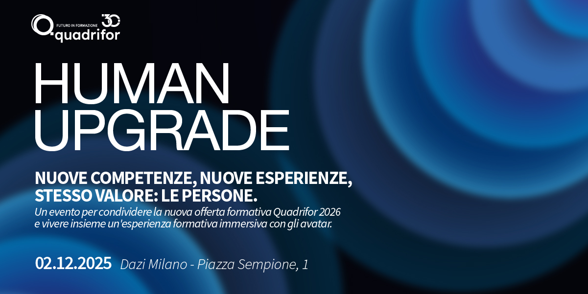 "Il mondo del lavoro esige oggi un ripensamento delle competenze e delle capacità, che devono adattarsi a uno scenario fluido e in continua trasformazione. In questa rivoluzione di ruoli e competenze, la formazione è un asset chiave per essere competitivi e restare rilevanti sul mercato. Quadrifor offre alle aziende strumenti utili per fornire competenze tecniche e trasversali e supportare la crescita professionale dei propri Quadri"